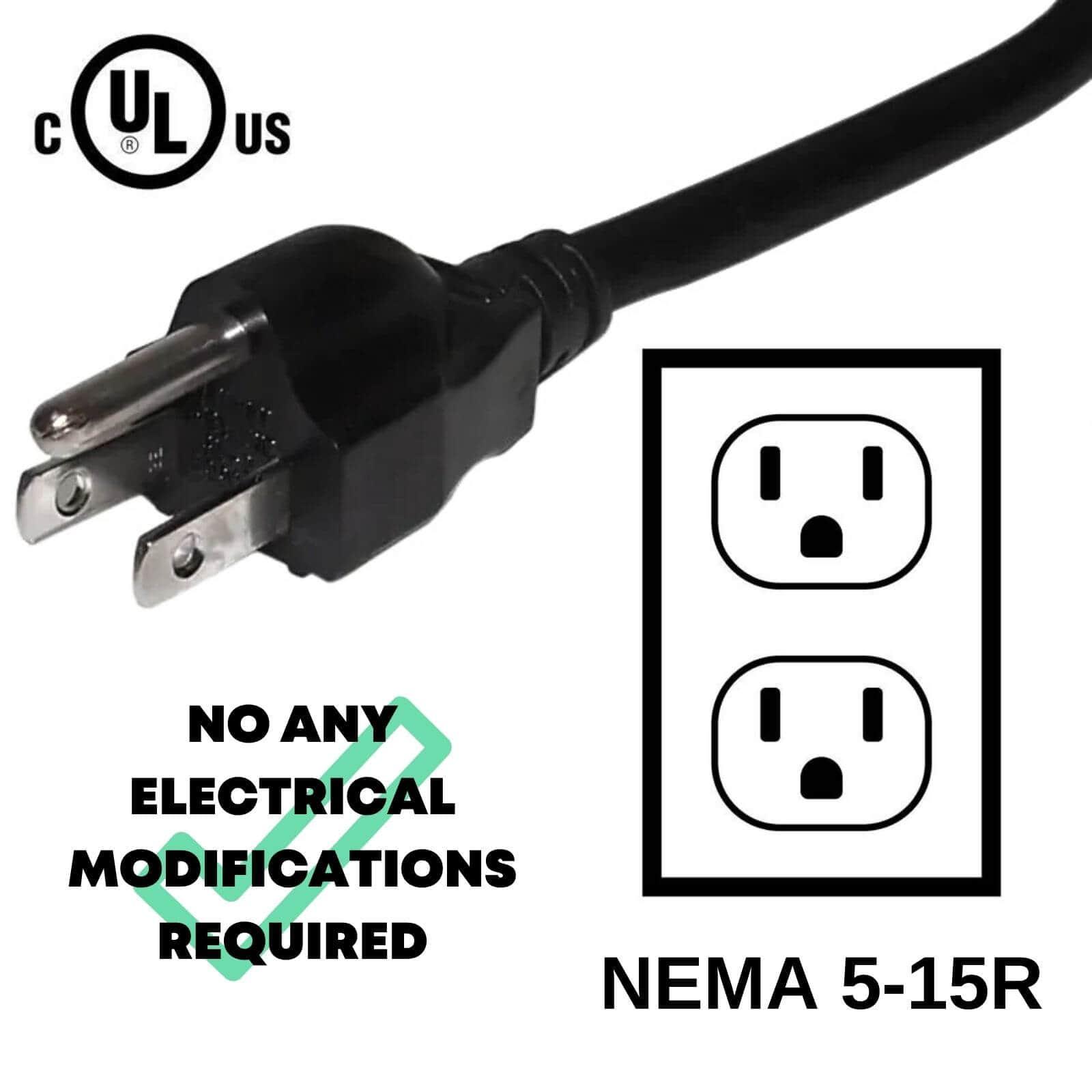 Electrical Requirement 120V / 15 Amps (Standard Household Output)