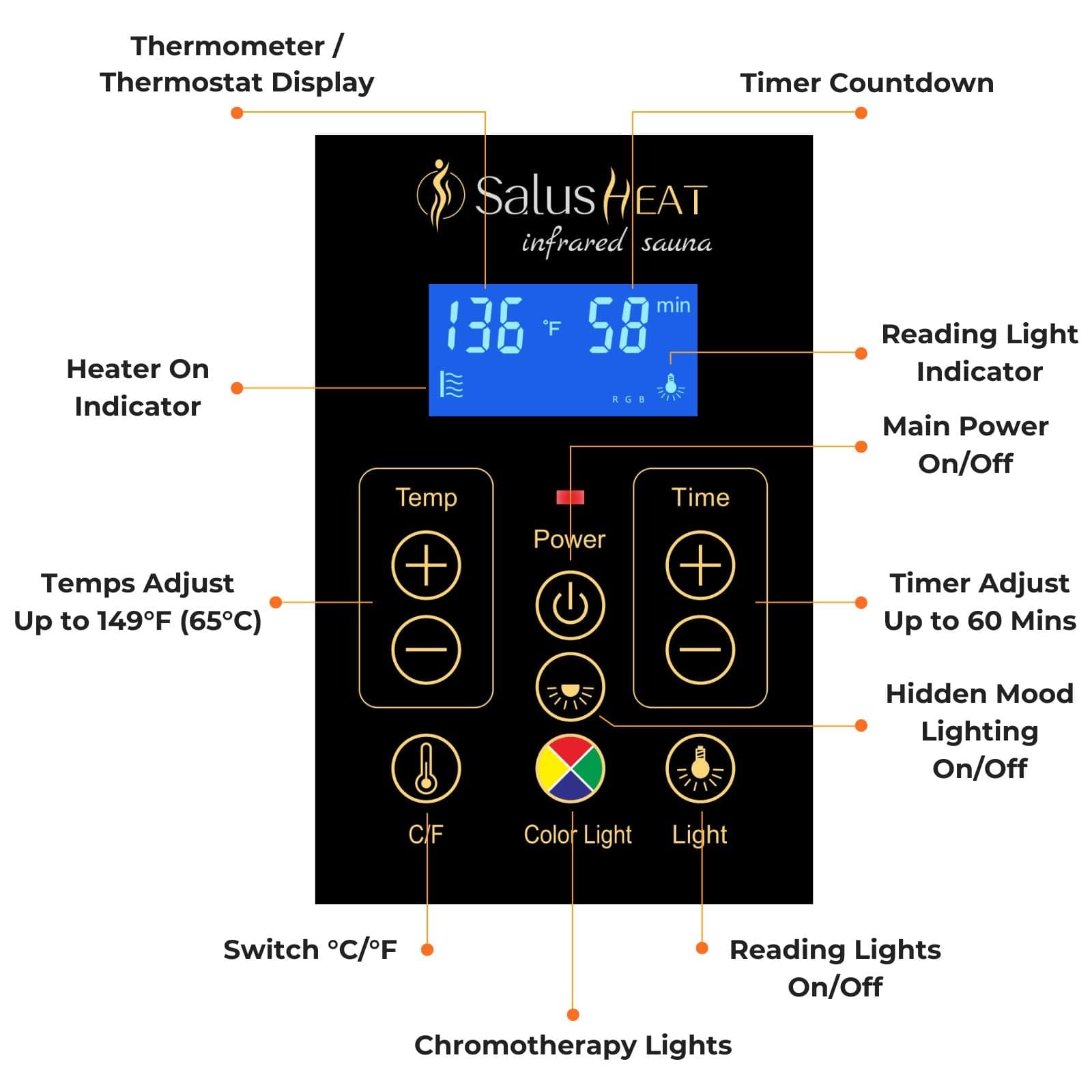 This ultra-high-end series offers the affordable price advantage of the 909 series and is also equipped with the Maxwell™ ultra-low EMF heating panel. Not only that, but it shares the LCD panel control systems with Maxwell, and the difference from Purity-909 is the maximum setting temperature of 149 degrees and seven-color therapy lights.